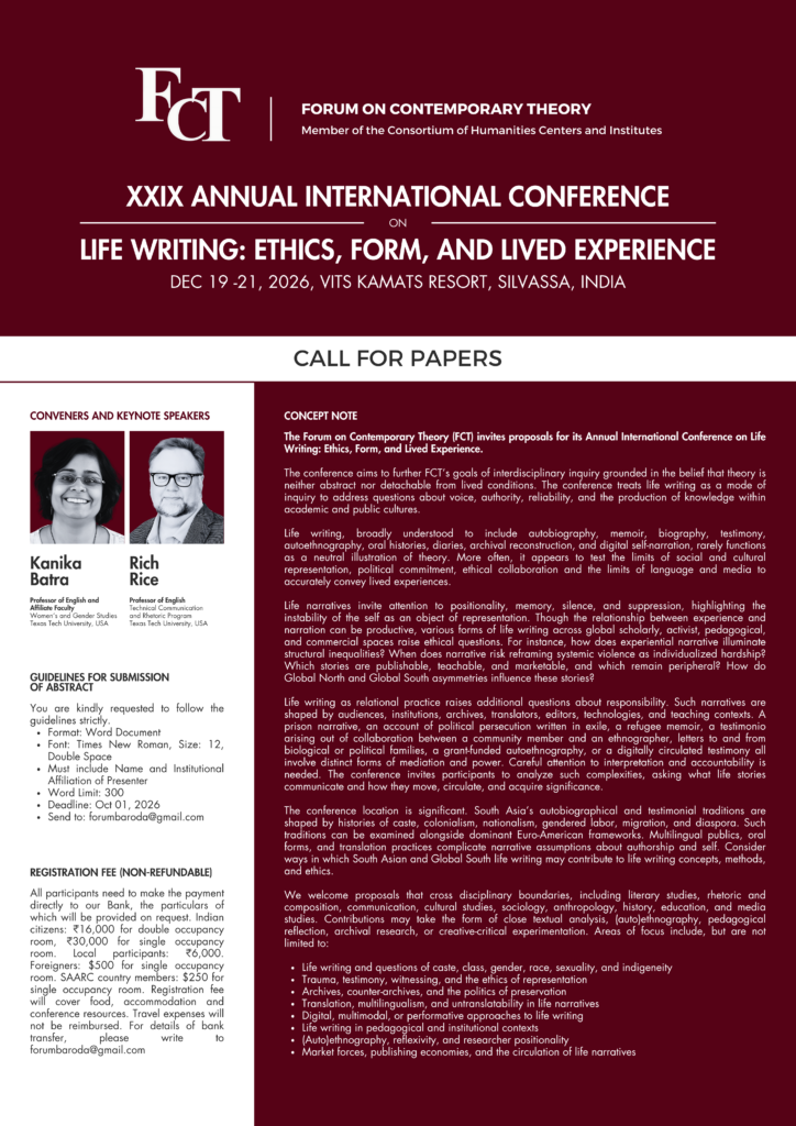 LIFE WRITING: ETHICS, FORM, AND LIVED EXPERIENCE